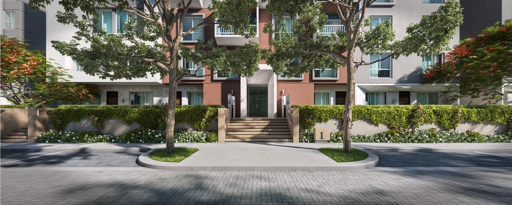 The compound spans approximately 7 acres and is carefully designed to maximize open spaces and greenery. Only about 22–23% of the land is dedicated to buildings, while the majority is reserved for landscaped gardens, water features, and community areas that enhance residents’ quality of life.